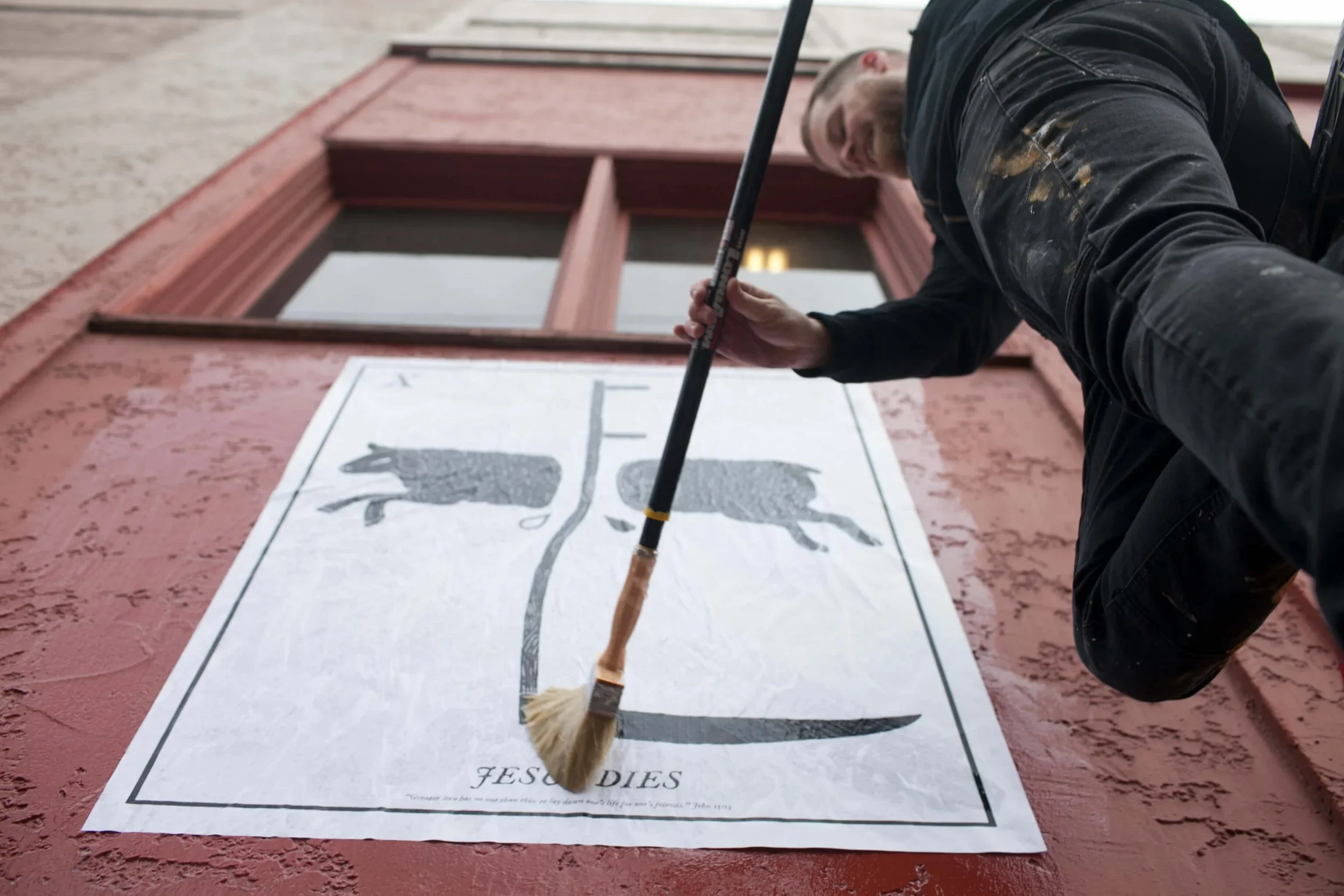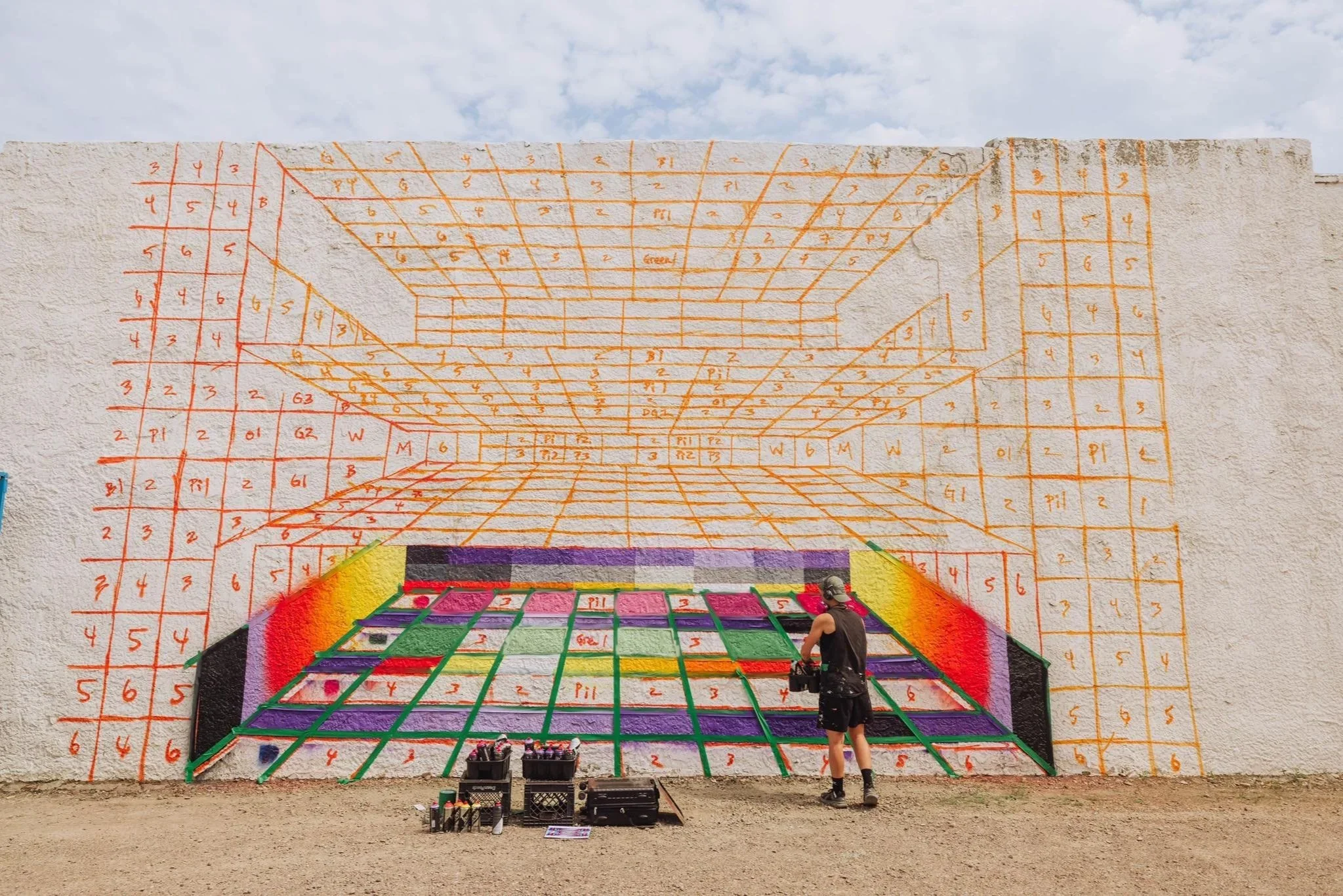Mural in progress by Alex Allen. Photo by Matt Ehnes.