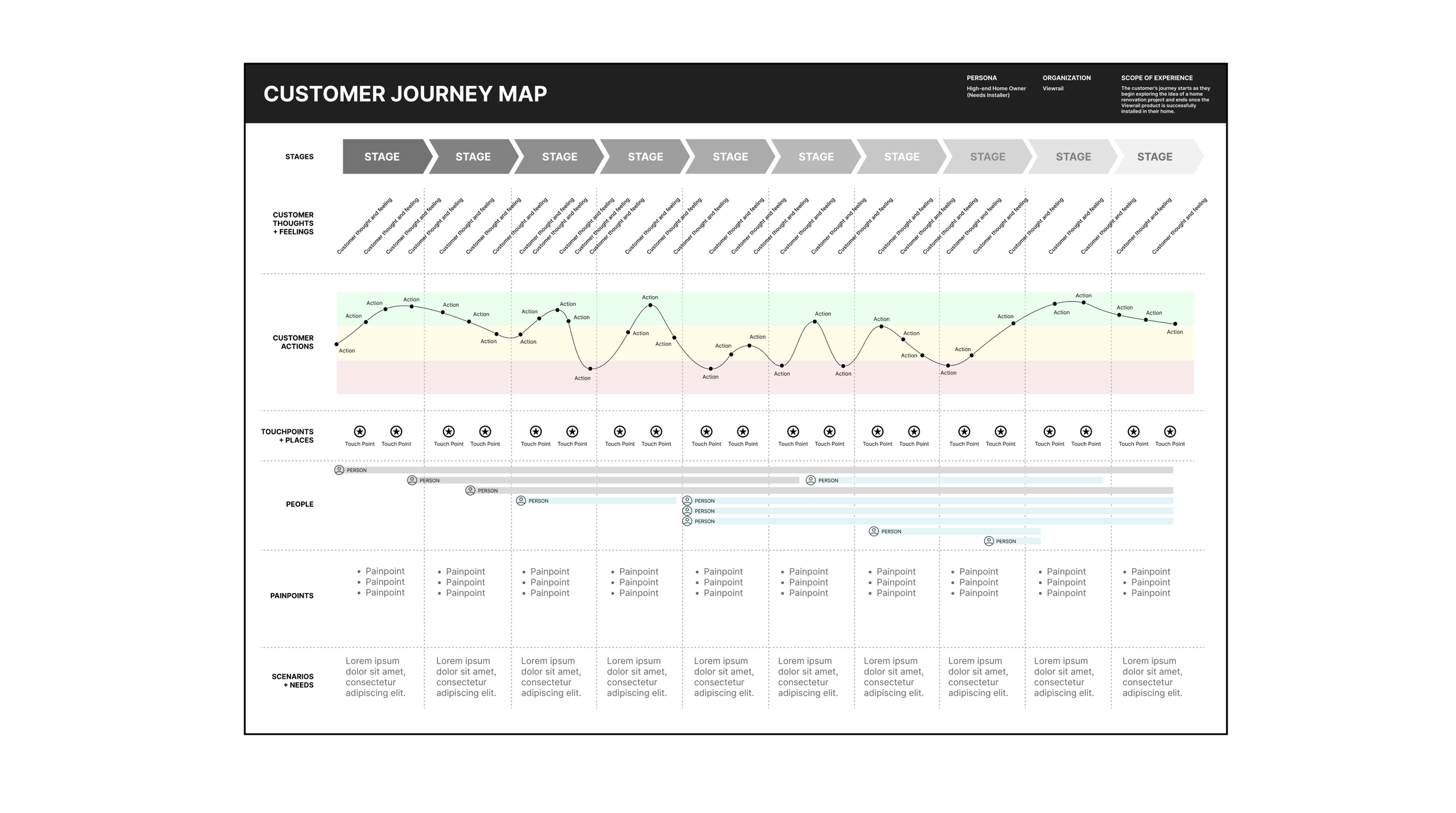 Shared, visual representations of end-to-end experiences aligned teams around customer needs and surfaced gaps that hadn’t yet surfaces.
